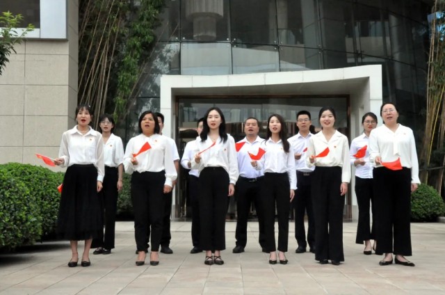 觀摩交流會結束后,參加活動的全體黨員齊聚炎黃科技園親水平臺,參加洛龍高新區“歌聲嘹亮 禮贊山河 政企聯唱 齊頌百年”獻禮建黨百年華誕主題活動合拍視頻的錄制。